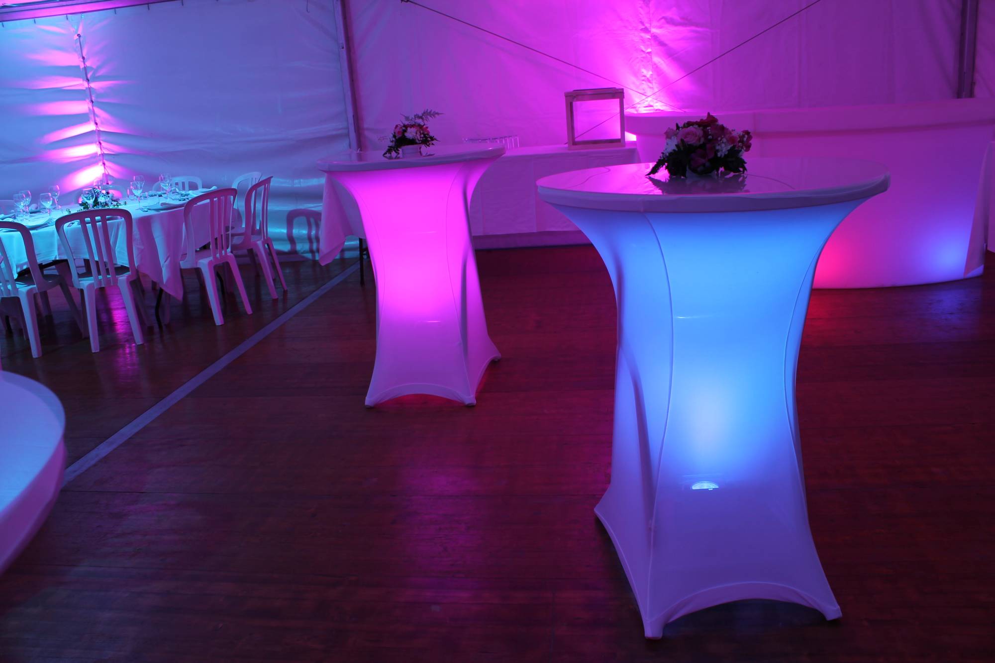 Cette location de banque d’accueil lumineuse donnera une autre dimension à votre événement. Son éclairage est autonome et il est possible de changer l[...]